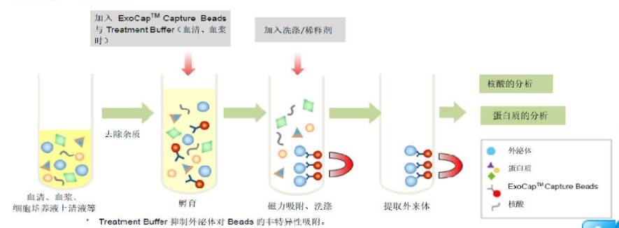 帶有外泌體特異抗體的磁珠(如CD9,CD63,CD81,CD326)與樣本孵育,用磁鐵或離心等方法將外泌體分離出來(lái)
