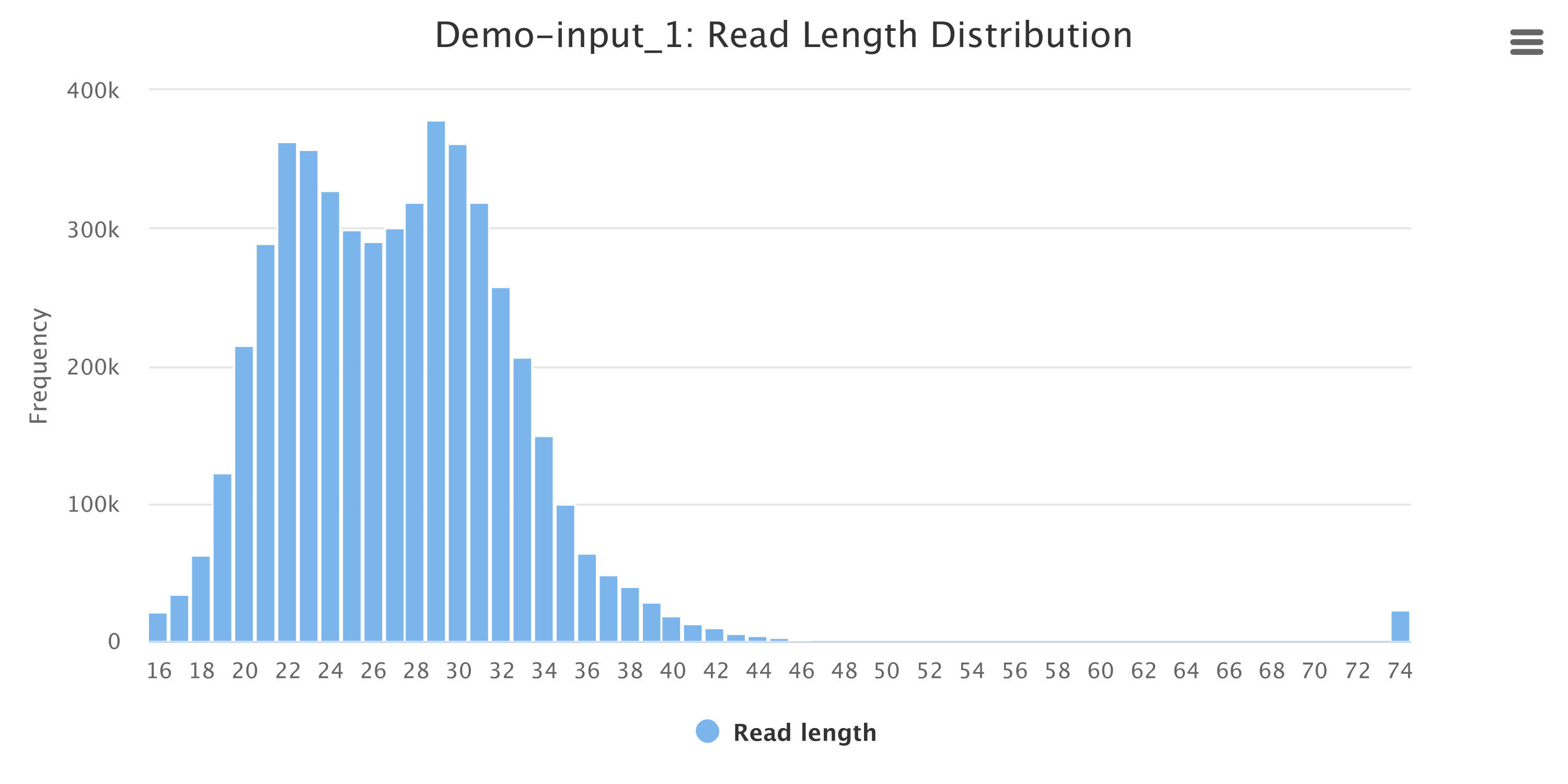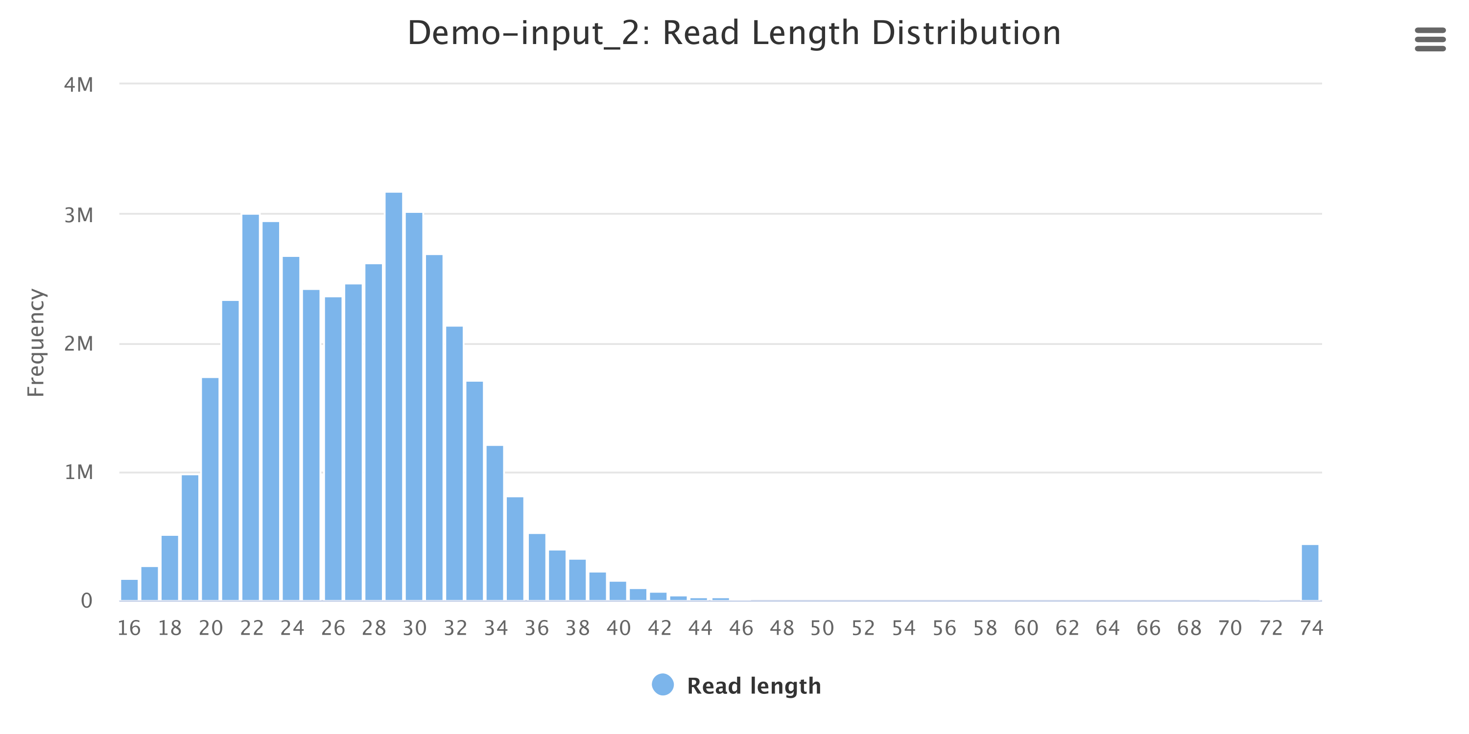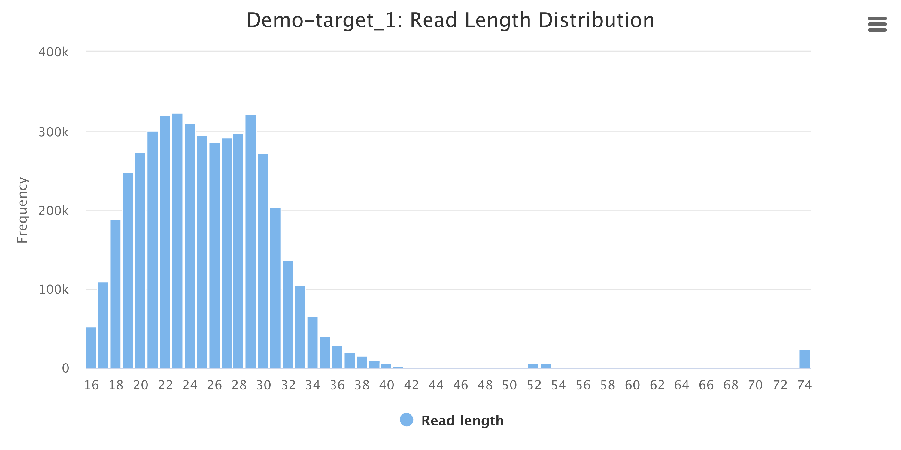 ??一般來(lái)說(shuō),小RNA的長(cháng)度區間為18~30nt,數據過(guò)濾完成后,我們統計了clean reads數目及各自占總reads的百分比,并繪制reads長(cháng)度分布圖。reads長(cháng)度分布圖能幫助我們判斷小RNA的種類(lèi),如miRNA集中在21或22nt,siRNA集中在24nt,piRNA集中在30nt。